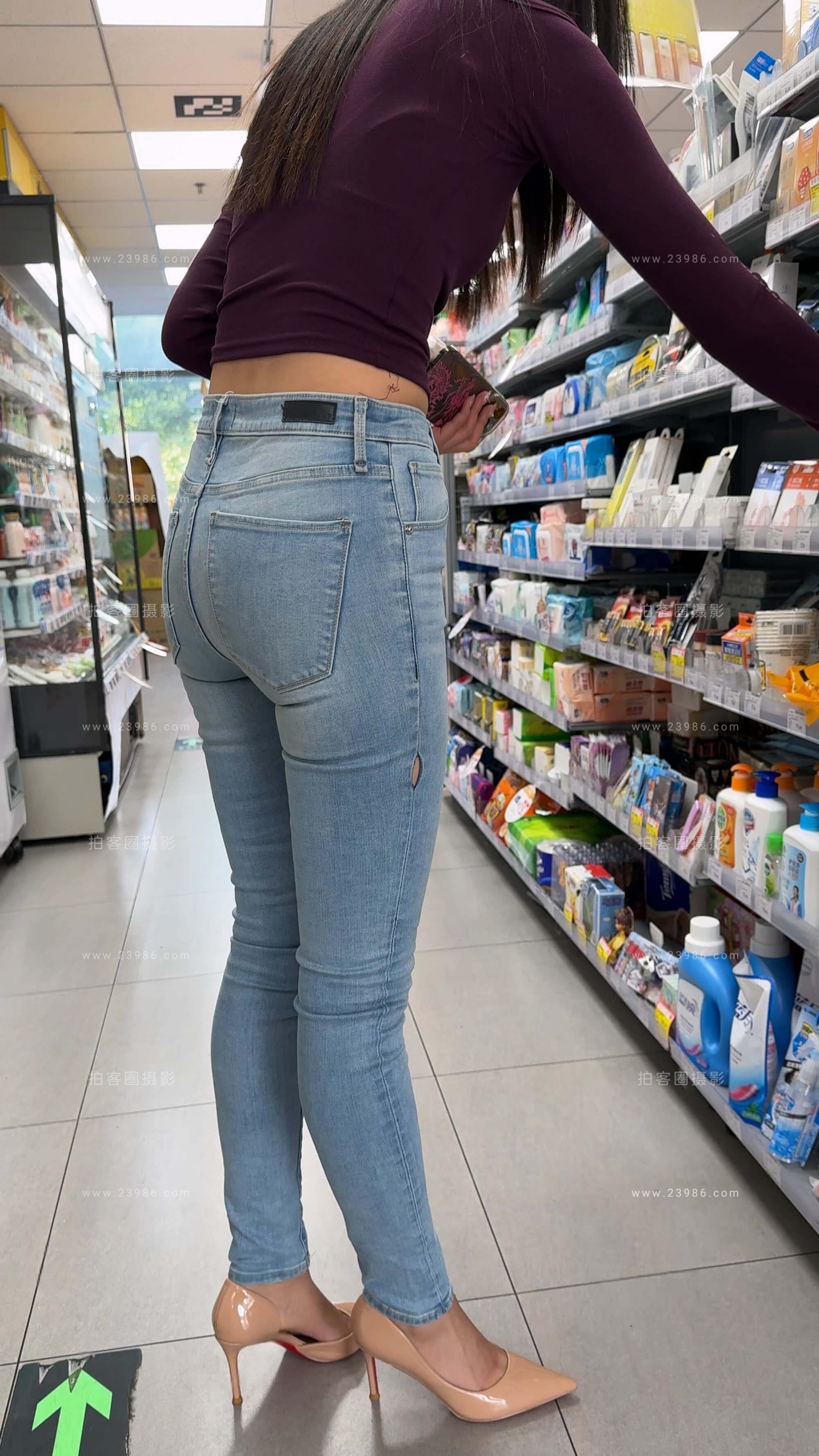 街拍紧身牛仔裤美女