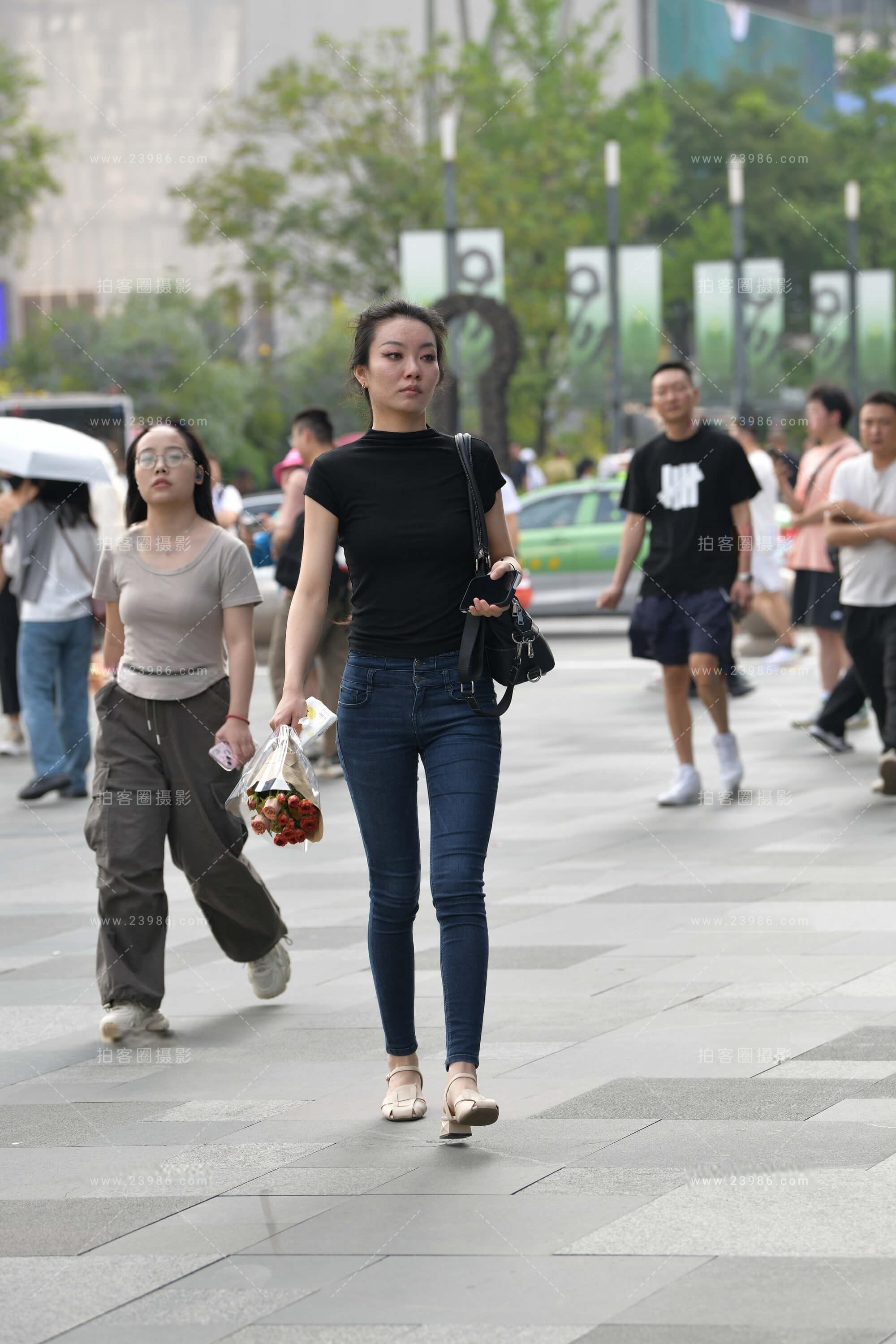 街拍那这一株花的牛仔裤美眉